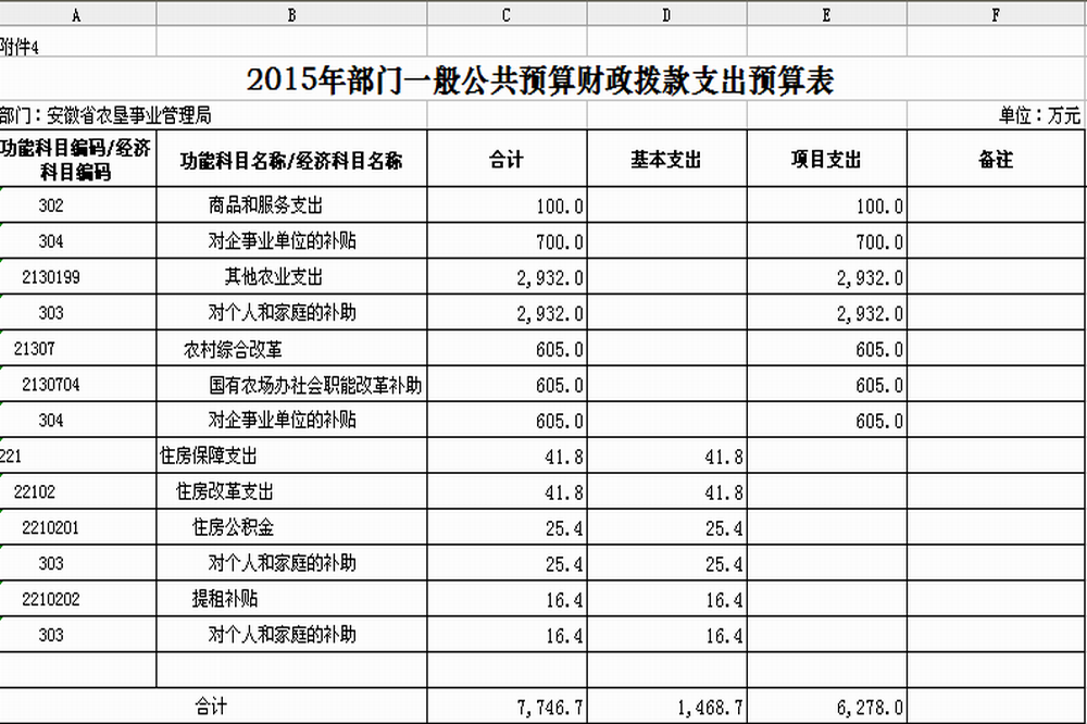 4. 安徽省农垦事业管理局2015年一般公共预算财政拨款支出预算表