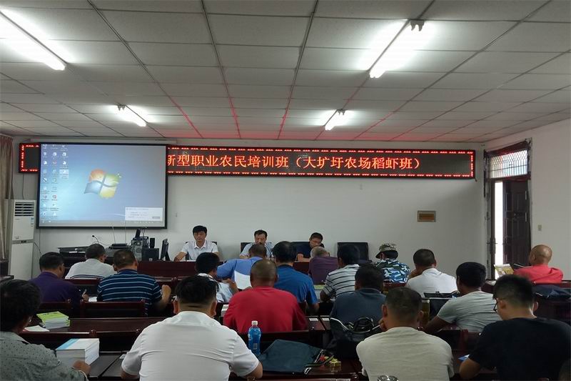 813-15日,安徽农垦2018年新型职业农民稻虾班第一阶段培训在大圹圩农场举办,农垦集团人力资源部、寿西湖技校、大圹圩农场有关负责人参加开班式,全场50名农工参训学习。