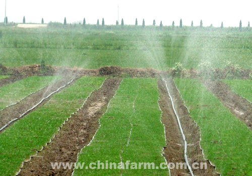在安徽农垦方邱湖农场全场干群的共同努力下,在技术人员的全程指导下,方邱湖农场旱育秧取得实质性进展,目前秧苗已育齐且长势喜人,旱改水其它相关工作正在紧张进行。图为微喷浇灌场景。
