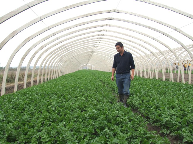 深秋,龙亢农场五分场职工柏树棵自建的蔬菜大棚里,西芹长势旺盛、郁郁葱葱,呈现出一派生机盎然的景色。今年秋季,柏树棵在农场优惠政策的扶持下,投资8万元建设了7亩水泥架构的蔬菜大棚,大棚内栽培的西芹亩产可达5000公斤,将在春节前夕走俏上市。据市场预测,每公斤最低价1.7元,亩产值将超过8500元,当季亩效益将超过6000元。这预示着,柏树棵在不到100天的时间里将获得4万余元的纯收益。