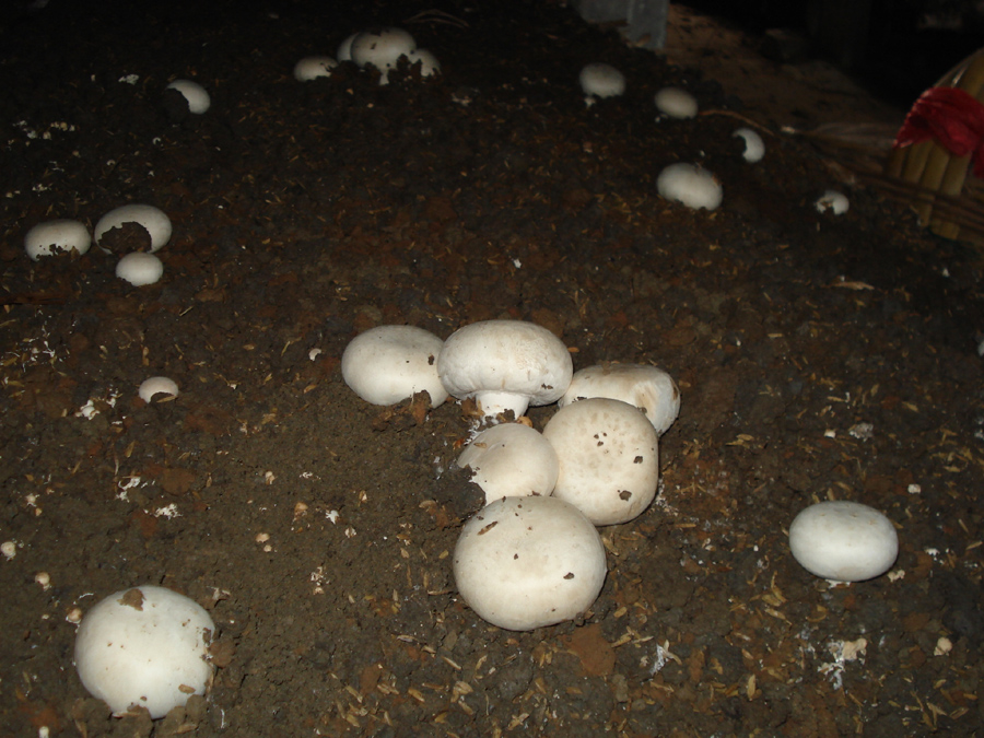 “今年双孢菇市场需求量大,收购价已飙升到四元一斤了。俺们抓住时机,菇子种的早,其他菇产地山东、福建产品还没上市,俺们的菇子在菇房就被预订了。今年俺们家两个菇房保守算也能稳赚八九万。”淮南农场食用菌种植户洪军芳跟笔者说道。