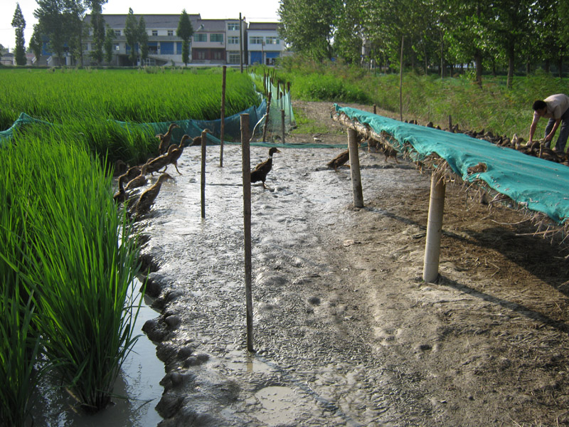 据了解,在去年稻田养鸭实践的基础上,青草湖分场职工赵军今年再次进行稻田养鸭面积30亩,先期放养的鸭苗600余只﹙每亩20只﹚,目前已基本成熟,即将出售;赵军计划将继续放养第二批鸭苗,养鸭450只﹙每亩15只﹚,预计在水稻收获前出田集中育肥出售。根据该户介绍,稻田养鸭、稻鸭共作可亩均增加收入150元,而且通过养鸭还可减少肥料、农药成本亩均100元,每亩可净增收入250元以上。