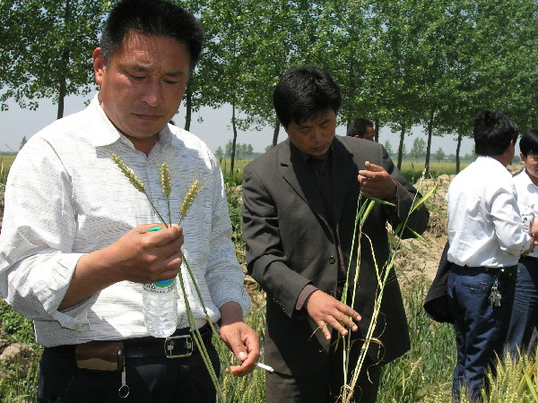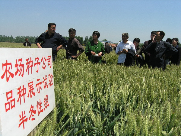 “眼下麦子已完成灌浆,如无特殊情况,今年我场小麦丰收已成定局。根据田间测产,全场小麦单产、总产纪录有望再次刷新,‘万亩千斤’小麦高产攻关目标将如期实现。”19日上午,在四分场大田,韩大鸣场长向来自蒙城县的200多名县乡领导介绍道。“到底是大农场,看这麦子长得,就是不一样。”前来观摩的人们交口称赞。副场长李先金拿起扬声器说道:“大家看到的就是具有抗倒、抗病、耐寒、高产、优质特点的泛麦5号,去年就是这个品种在我场拿了单产冠军,达1200斤,这块地,今年测产是亩产1300斤。”蒙城县副县长李星走进麦田,高声说道:“我们种的一些所谓传统品种,就是要由泛麦5号这样的优质品种来取代,从而提高我县的小麦产量和质量水平。”