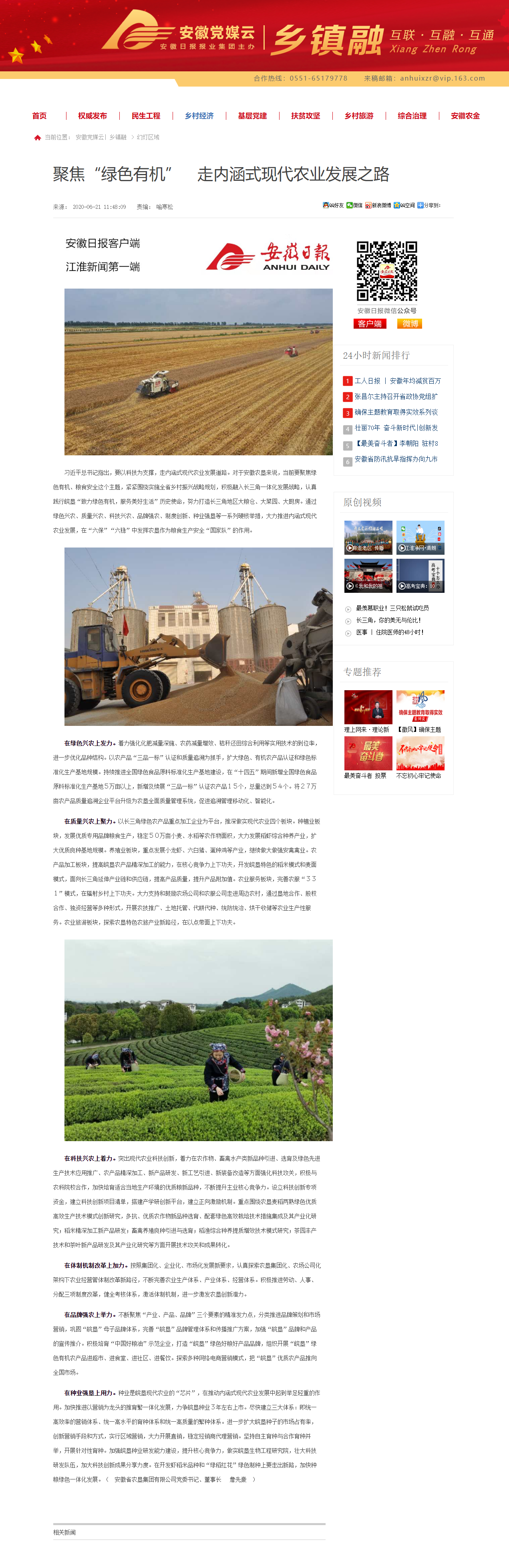 安徽日报农村版:聚焦绿色有机,走内涵式现代农业发展之路
