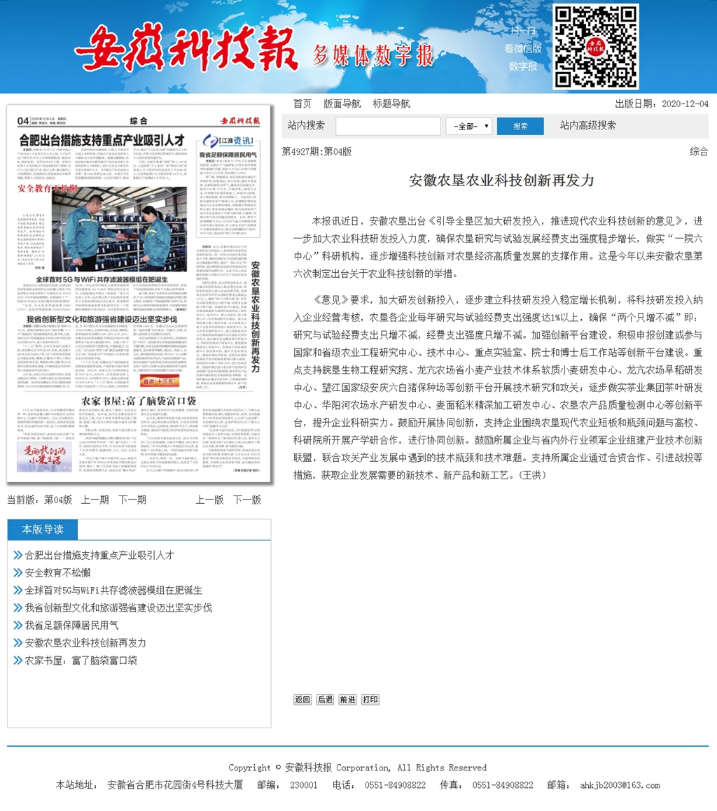 安徽科技报:安徽农垦科技创新再发力