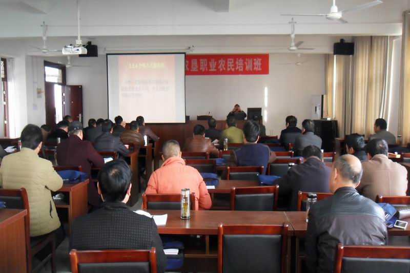 按照省农委、省财政厅下达的计划,今年安徽农垦将培训新型职业农民600名,其中生产经营型400名、专业服务型200名。本期开班培训类型为生产经营型,集训期限为3天共20学时,特聘安徽农大董召荣等5名教授专家到场授课。50名学员现已完成了农机农艺结合技术、农作物病虫草害识别及防治技术、高产小麦生产技术、高产水稻生产技术、现代农业经营管理等5门课程的学习培训任务。